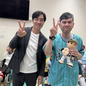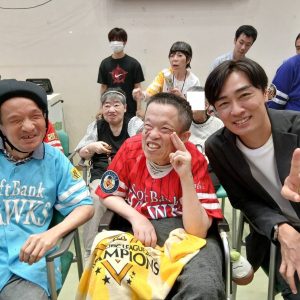 令和7年10月18日(土)福智町地域交流センターにて福岡ソフトバンクホークス・球団統括本部付アドバイザー和田毅氏による講演・トークショーと、映画「ケアニン~こころに咲く花~」の上映会を行いました。講演後に和田氏が第二みろく園へ来園して頂き、記念撮影を行いました。利用者様も職員も大熱狂され思い出深い日となりました!