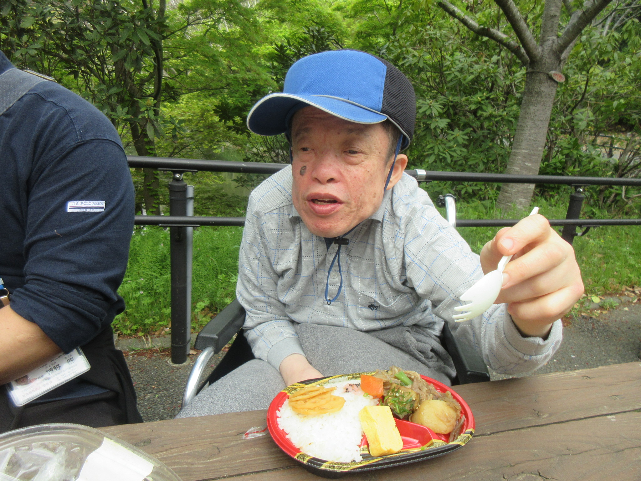 4月17日(木)班別外出女性1班の利用者様は、山田緑地公園へ行きお弁当を召し上がりました。公園内を散策して景色を楽しまれました。