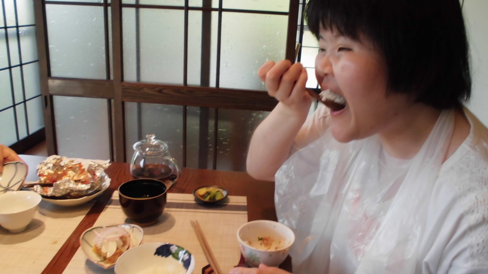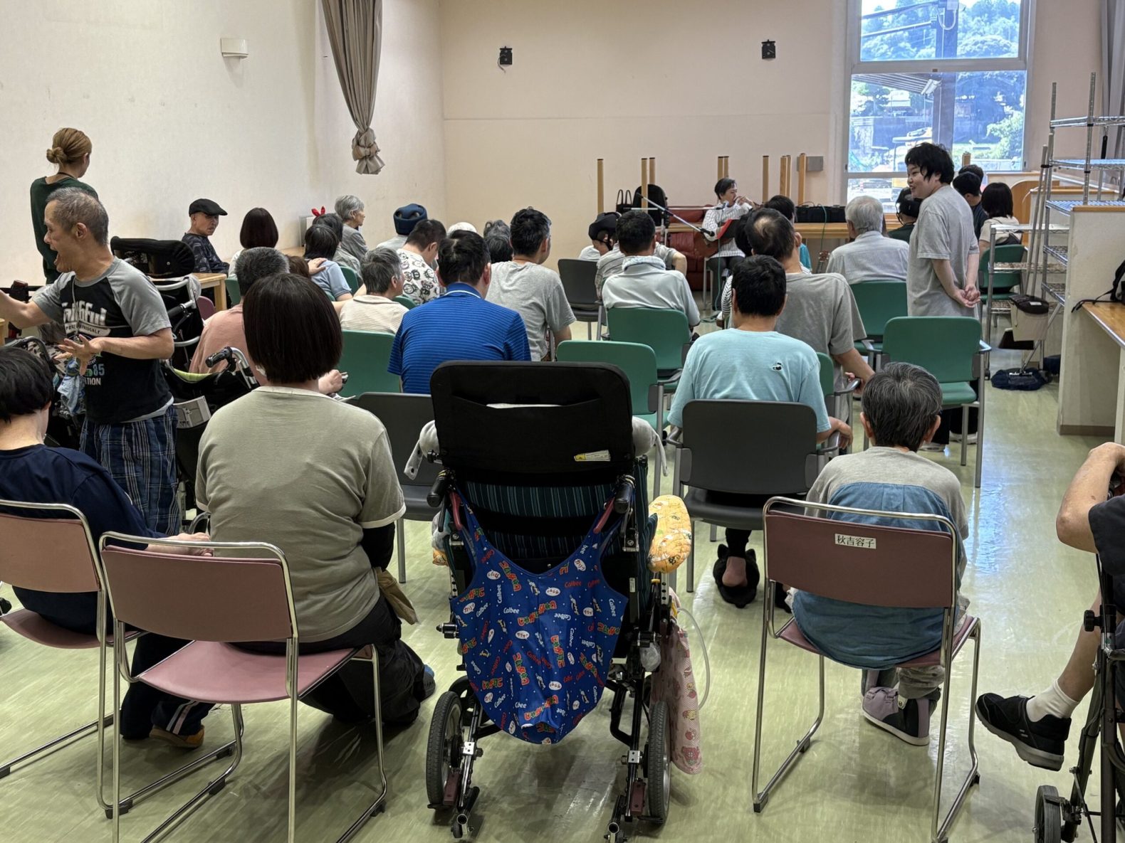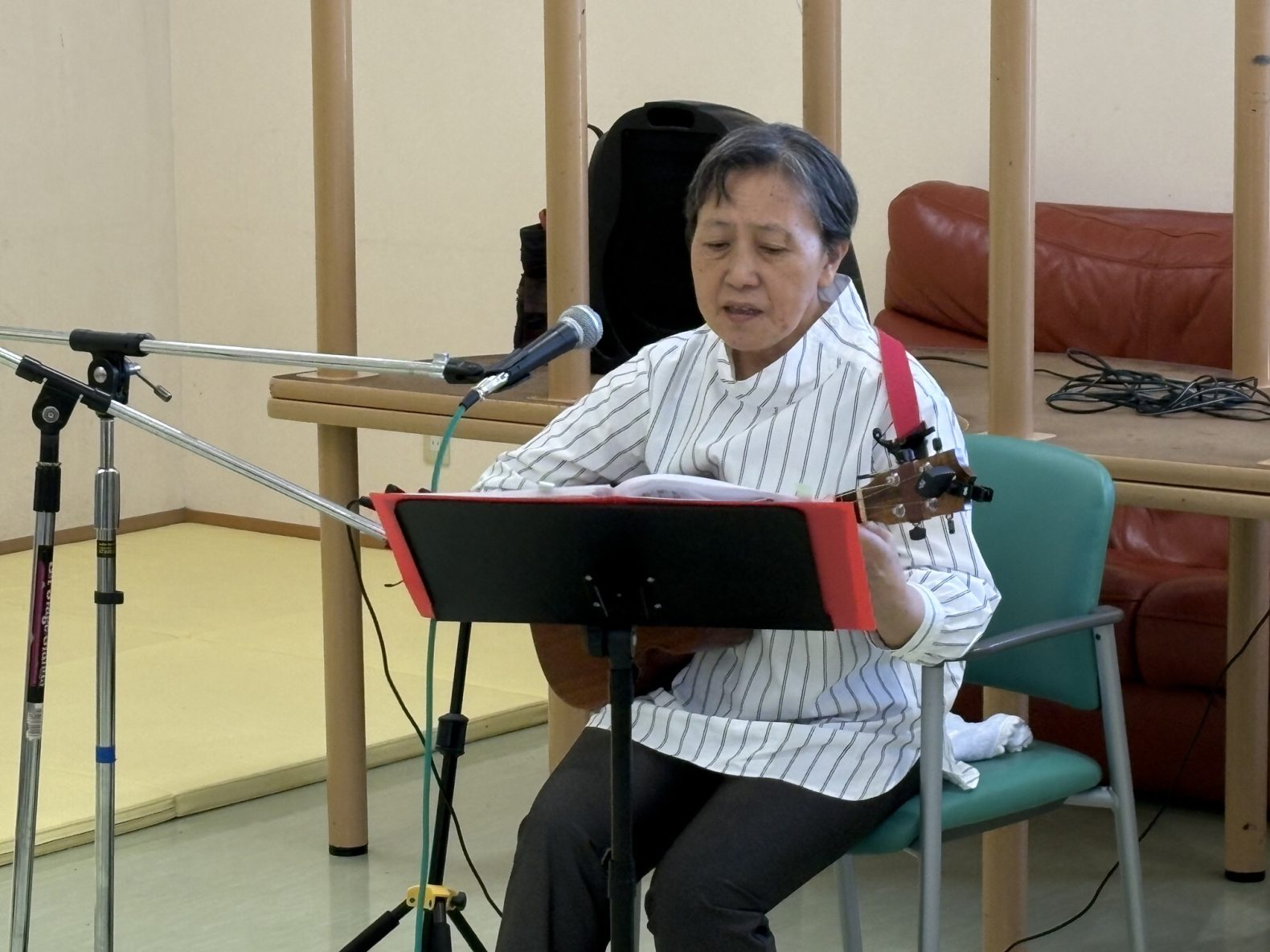 令和7年8月2日(土)第二みろく園の食堂にて家族会主催、ウクレレコンサートが開催されました。利用者様の保護者様も多数参加され美しい音色と歌声に耳を傾け、みなさん大変喜ばれており素敵な時間を過ごすことができました。演奏者の岡部真理子様、家族会の皆様、ありがとうございました!