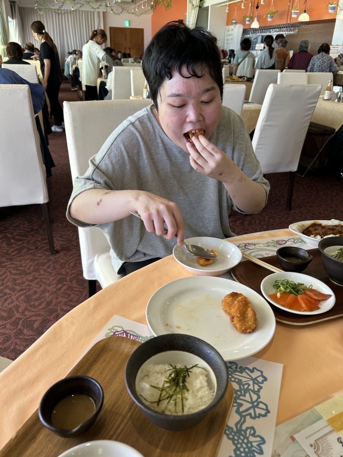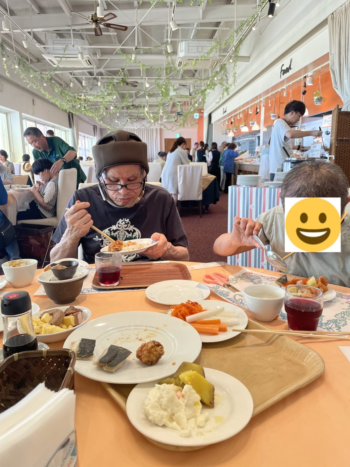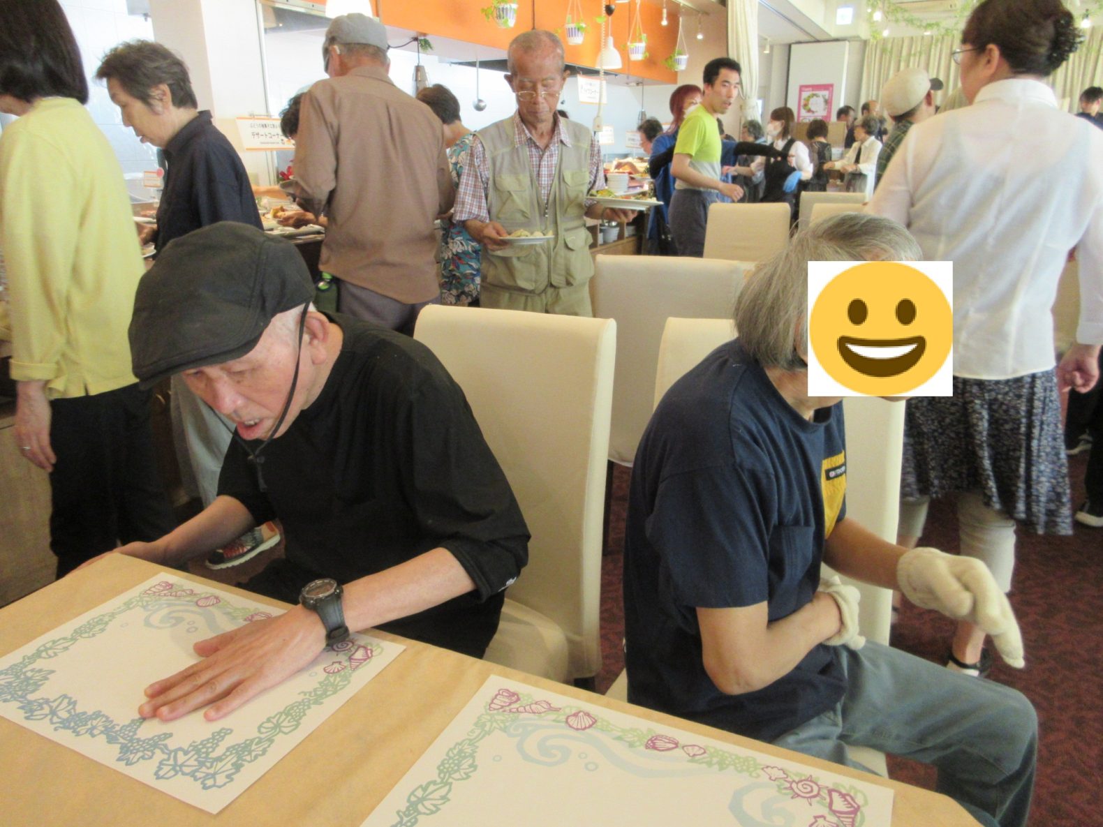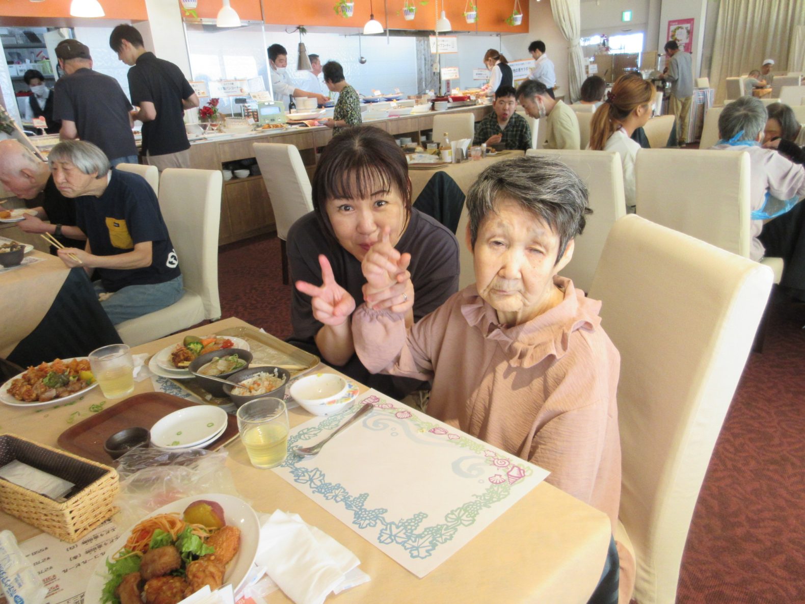 令和7年7月15日(火)に班別外出をしました。女性4班はユナイテッドシネマなかま16で映画を鑑賞して、その後ジョイフル蓮花寺店にて昼食を食べました。男性4班は宗像市の活魚村海彦で美味しい海鮮などを食べ、帰りに宗像王丸天然温泉やまつばさで入浴してスッキリしてきました。普段とは違う体験ができて、みなさん楽しそうにされていました!