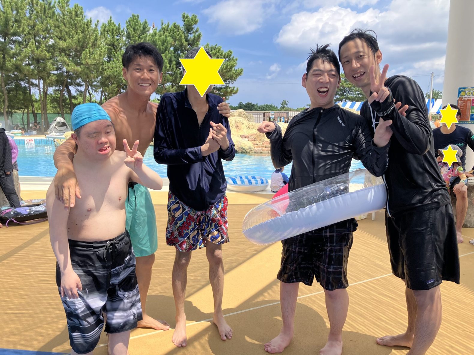 令和7年8月5日(火)男性5班は、午前中に芦屋海浜公園レジャープールアクアシアンへ行き、広いプールで思いっきり遊泳を楽しみました。午後からは宗像王丸・天然温泉やまつばさに寄り家族湯でさっぱりしたあと、レストランで昼食を食べました。夏を満喫し楽しく過ごされた様子でした!