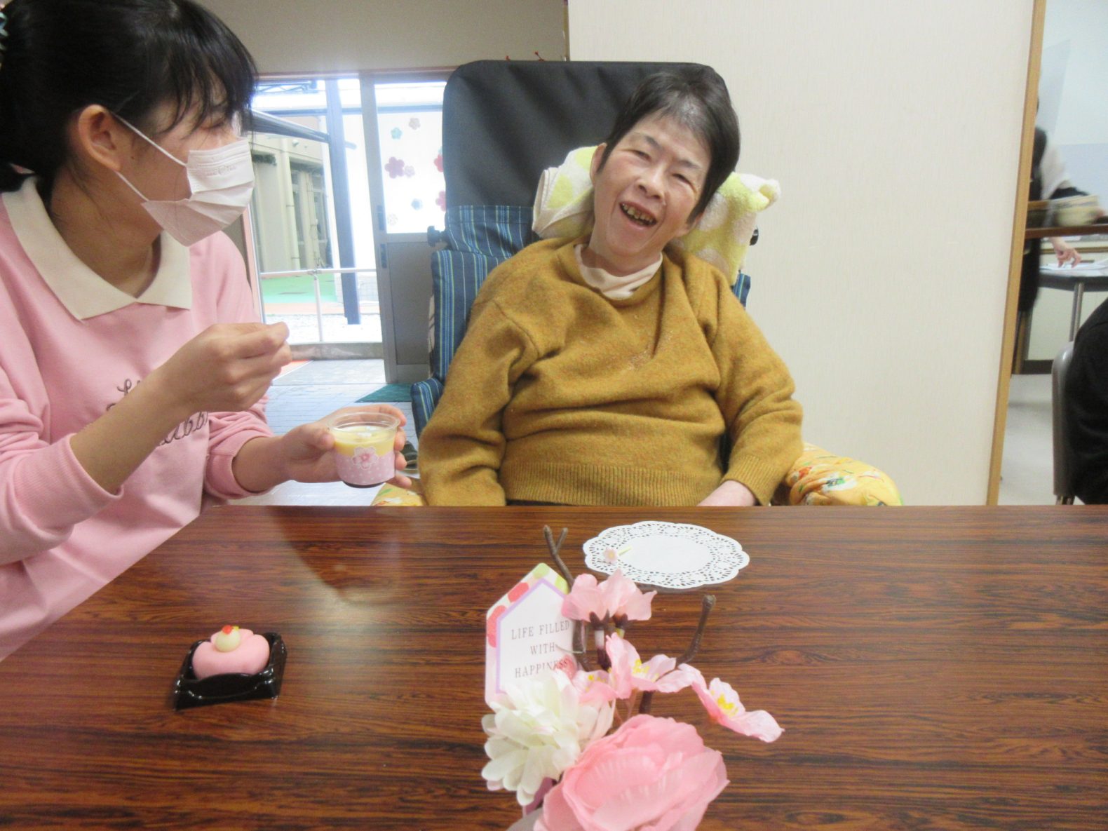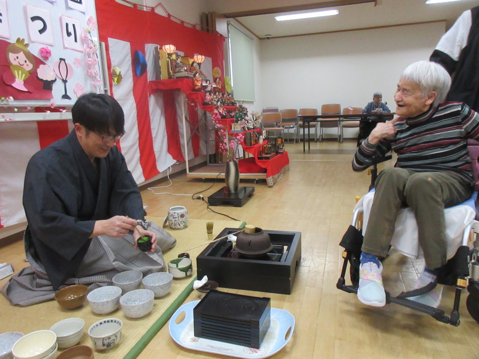 3月4日(火曜日)ひなまつり・お茶会をひまわり館で行いました。利用者さまは、抹茶と美味しい和菓子を召し上がり満足そうでした。😄