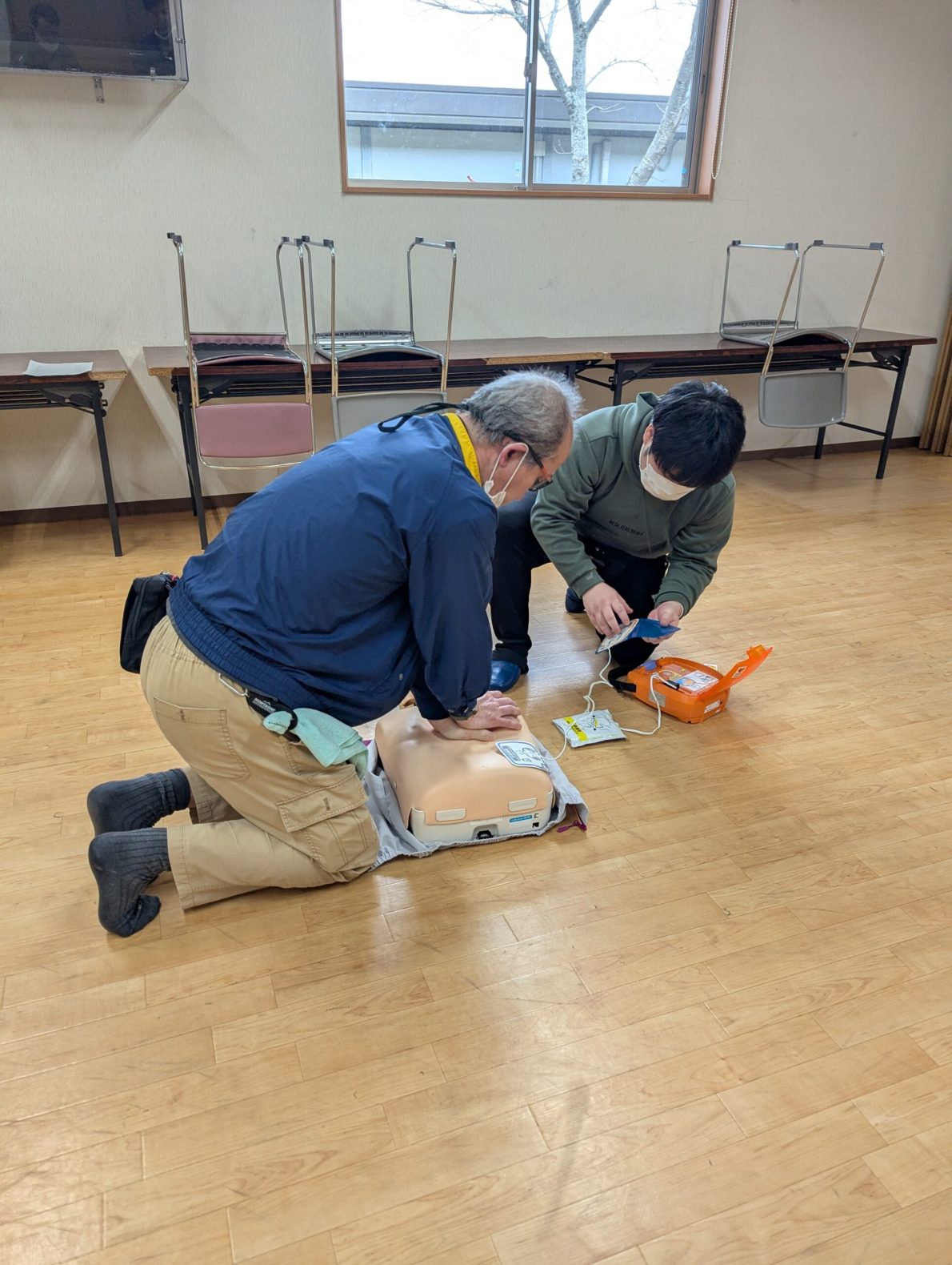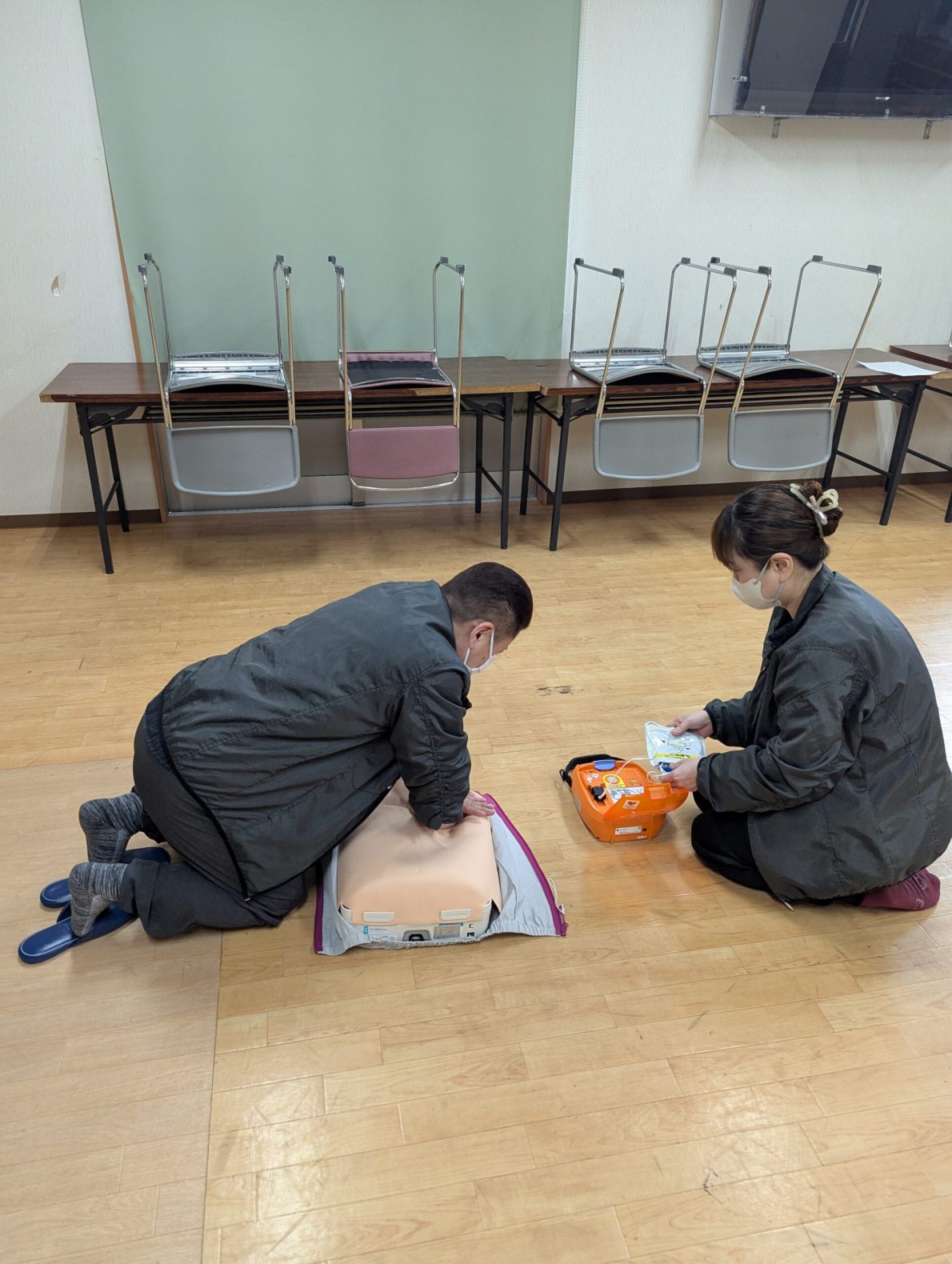 3月13日(木)職員のAED研修が行われました。利用者様の命を守る大切な研修です!