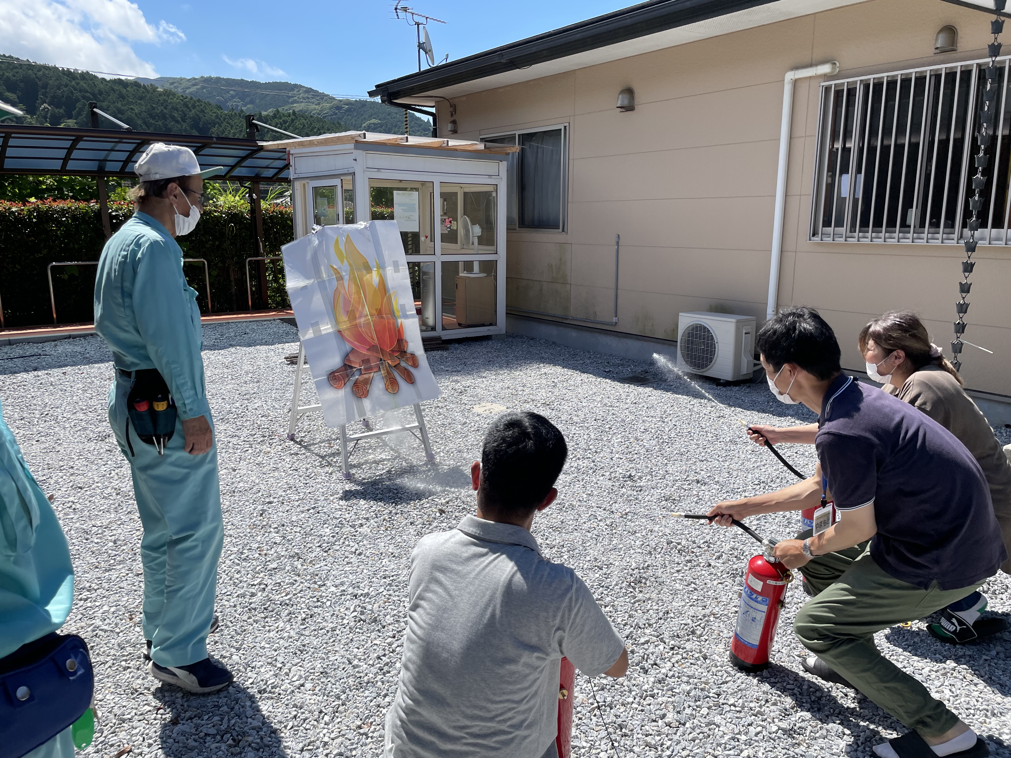利用者様を安全に避難させた後、職員の消火器訓練を行いました。🧯