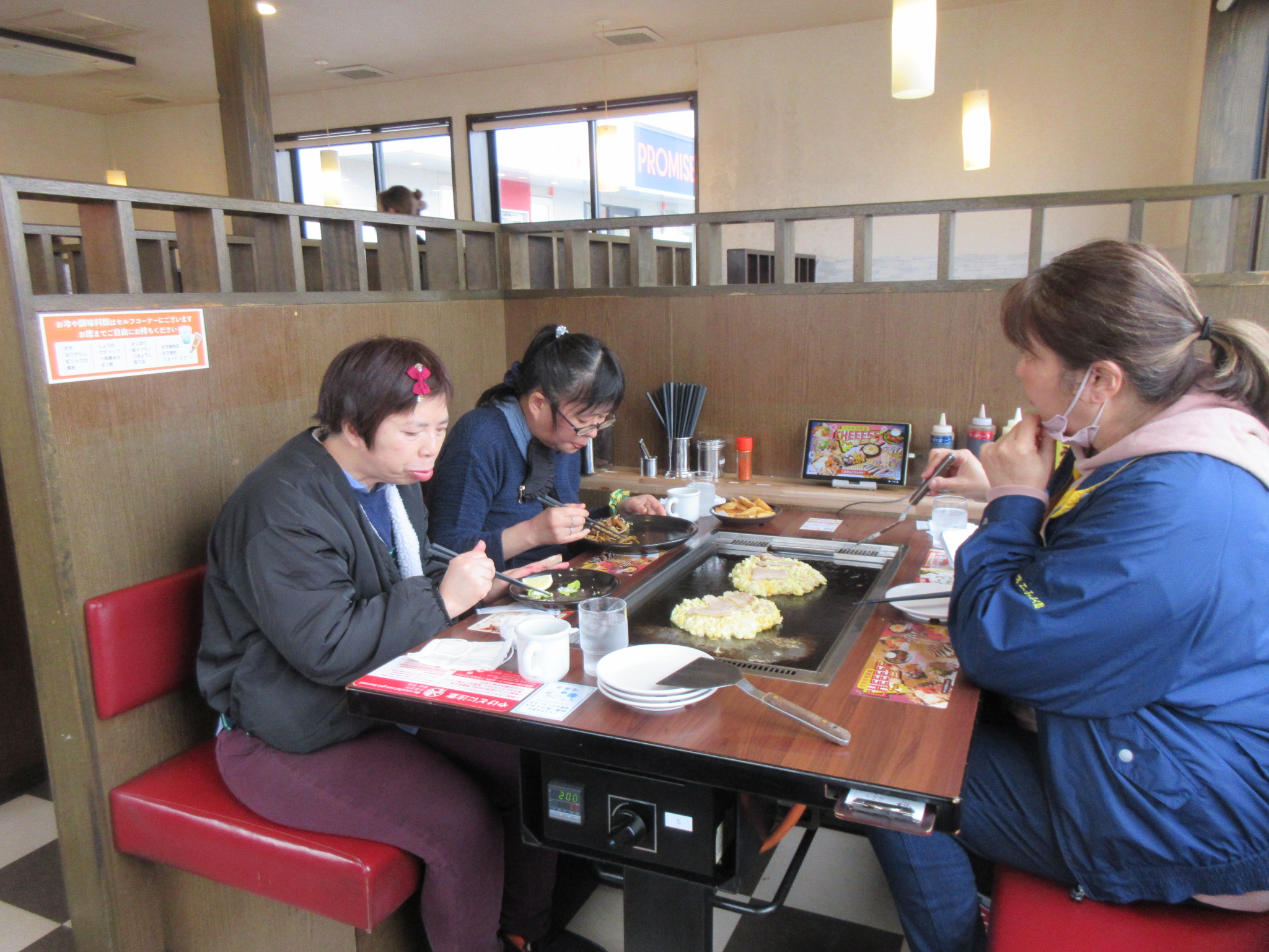4月19日(金曜日)班別外出1班は、宗像の天然温泉やまつばさに行き、家族風呂に入りました。施設のレストランで食事を楽しんだ後は宗像大社で参拝して、道の駅むなかたへ行き海を見ました。利用者様はとても喜んでました!