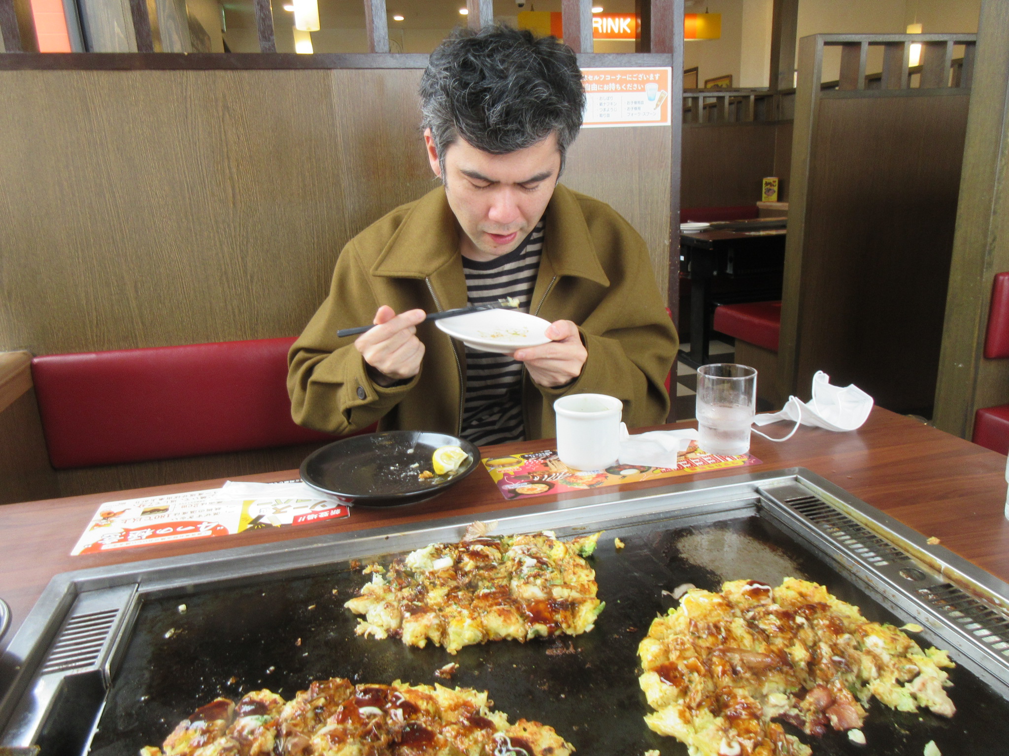 本格的なボウリングを楽しんだ後は、直方どんどん亭でお好み焼きを食べました!