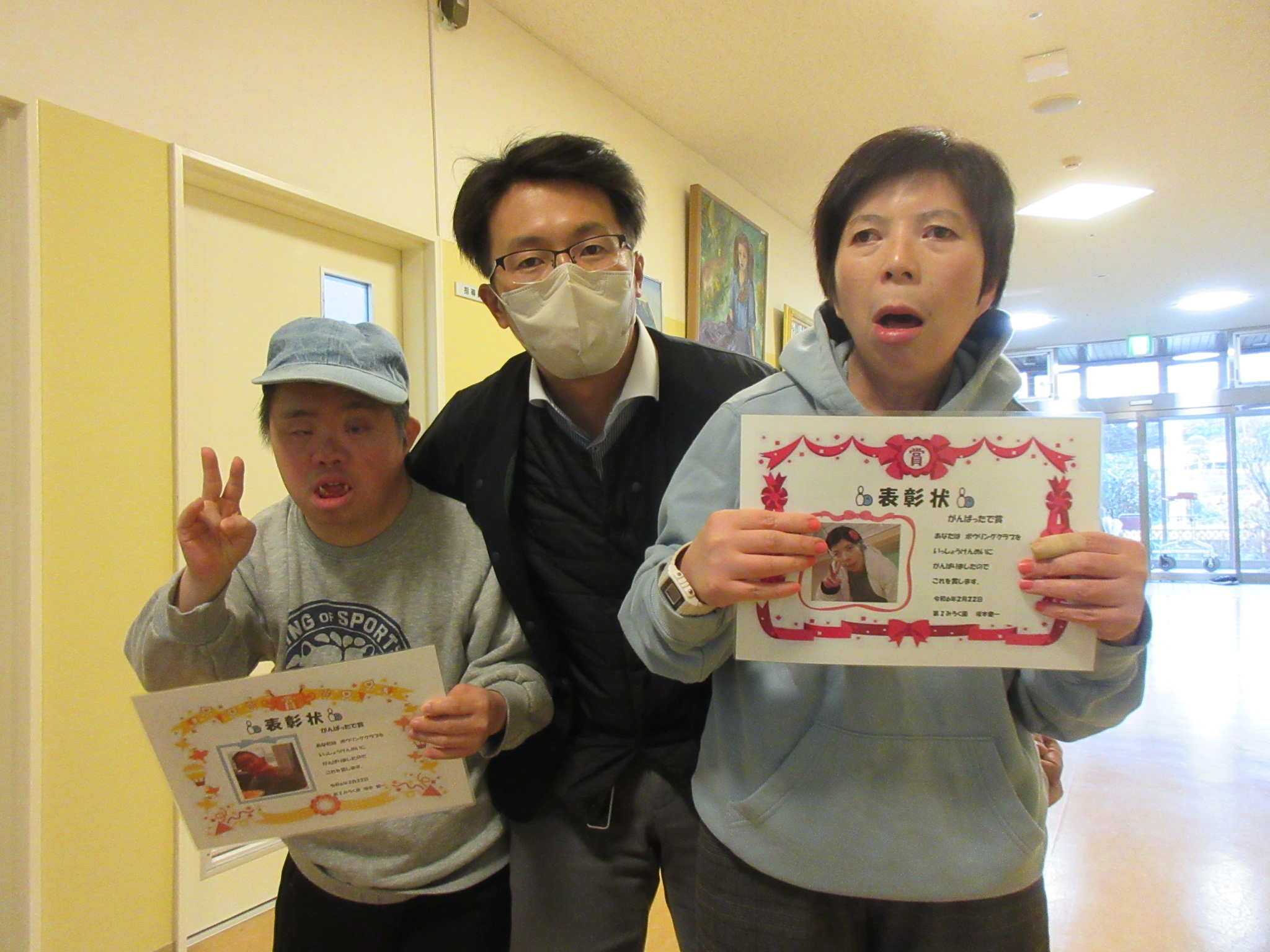 園に戻り、ボウリングの賞状を貰って嬉しそうでした😁