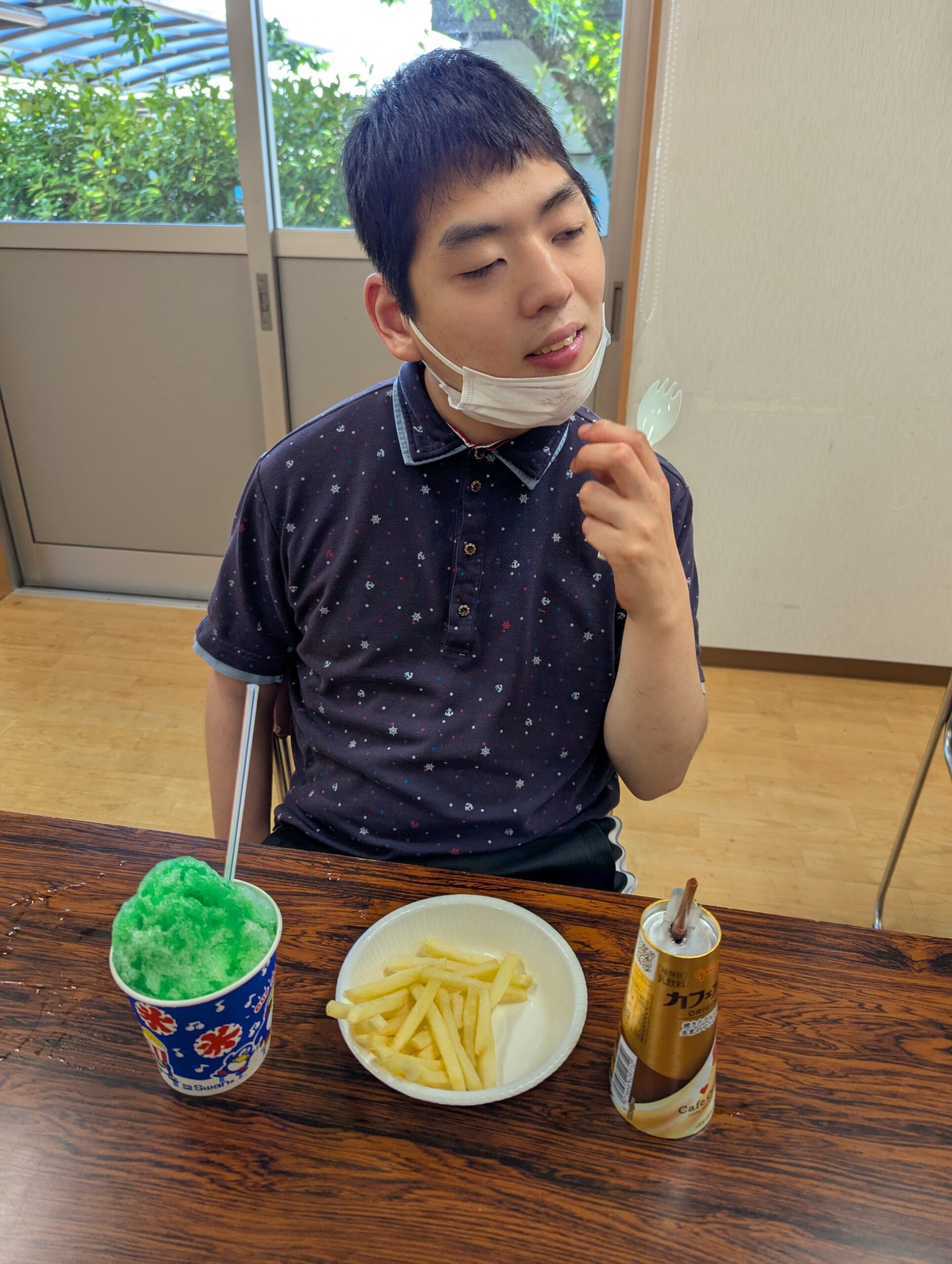 利用者様は唐揚げと、フライドポテト、かき氷を食べて大満足でした🍗🍟🍧😄