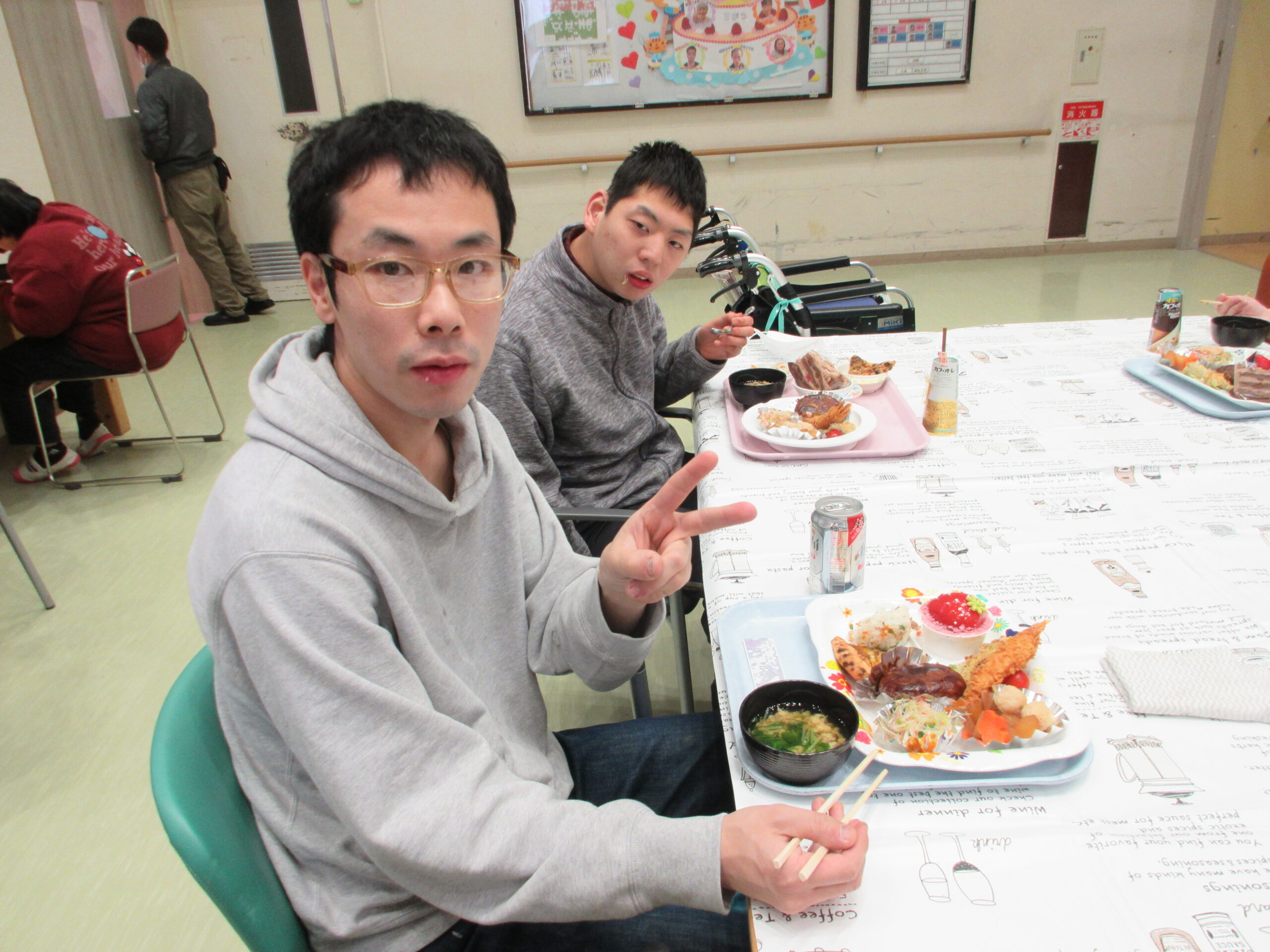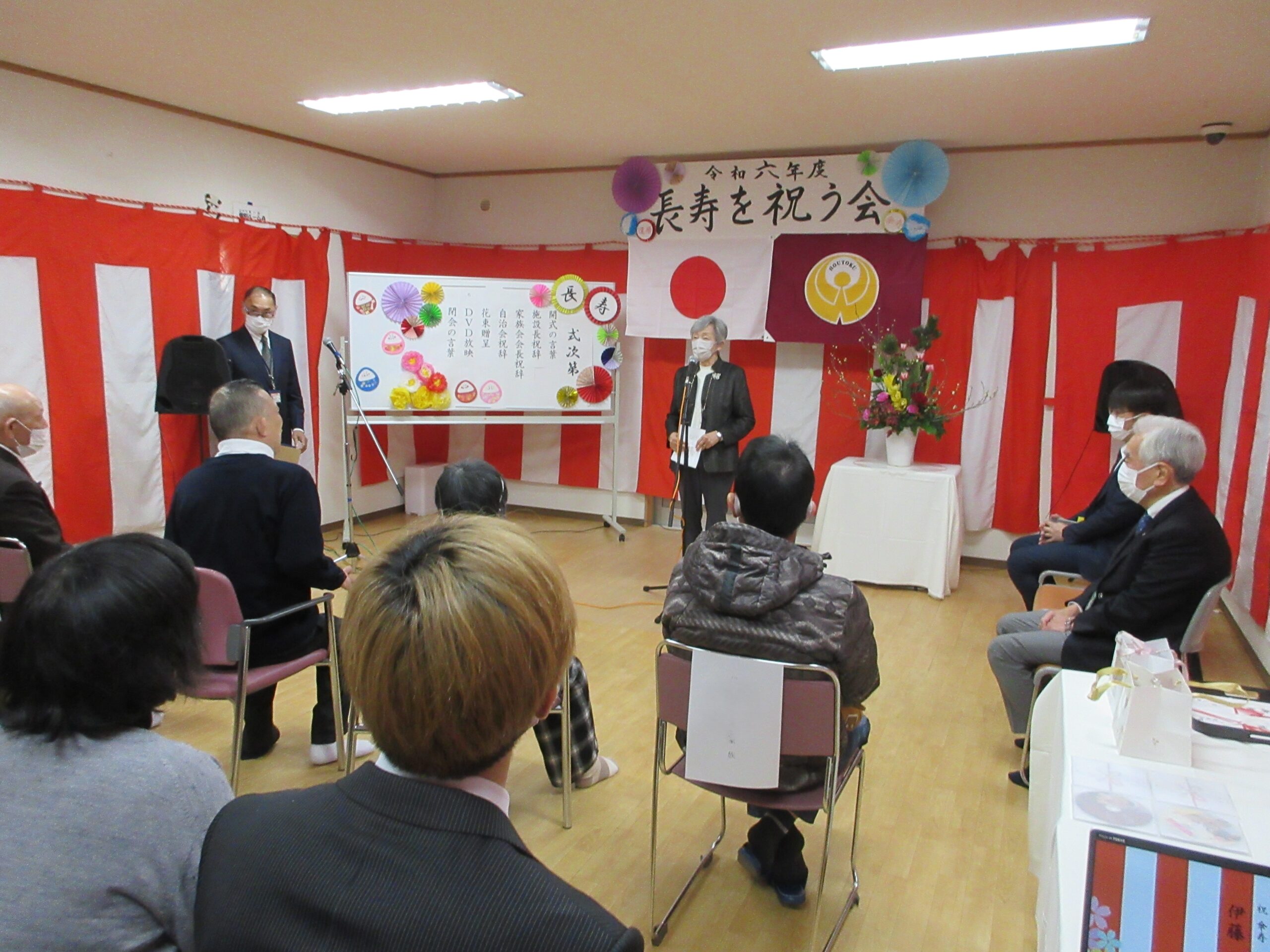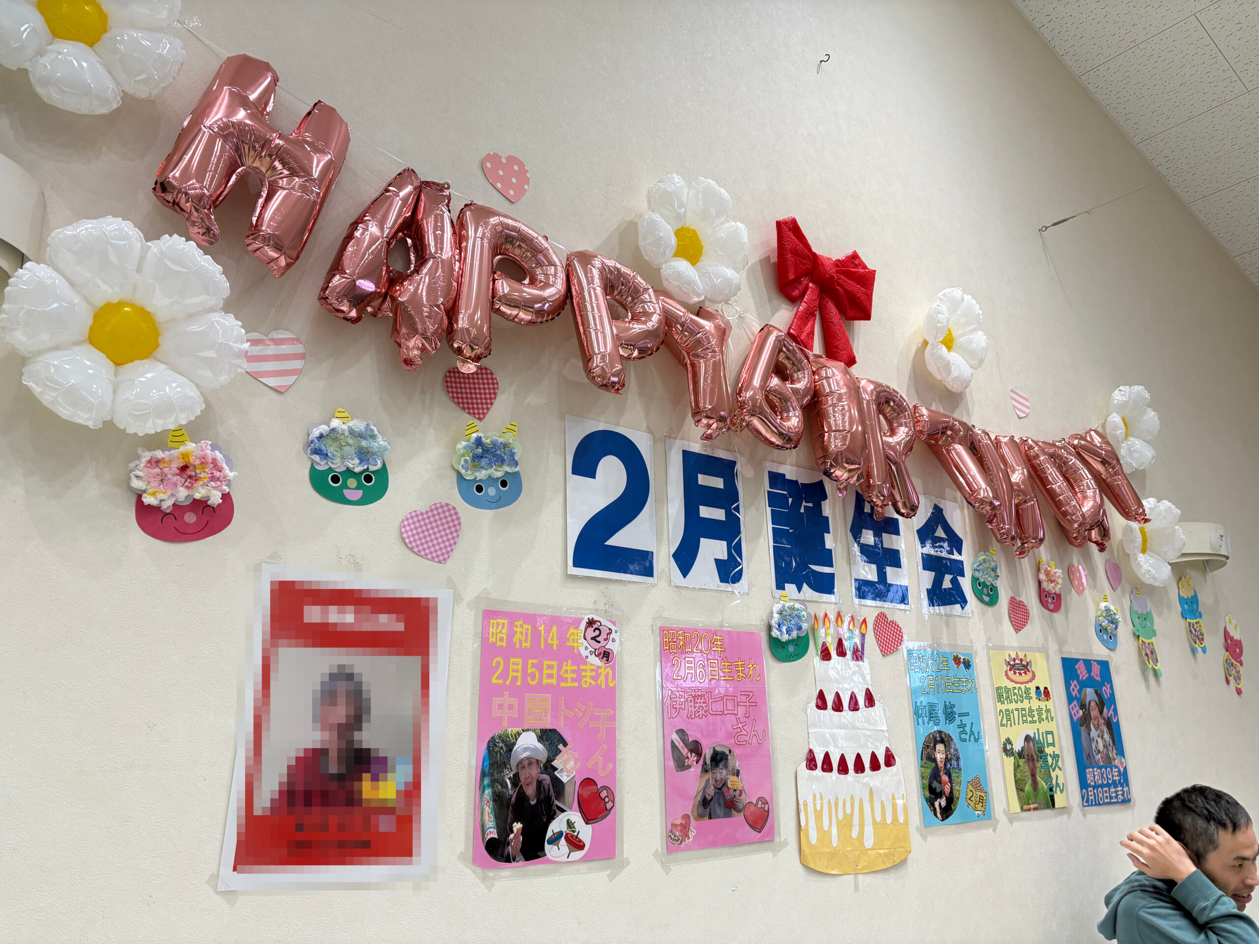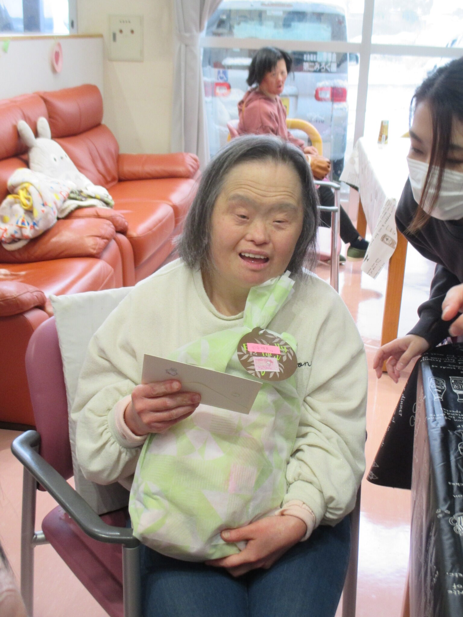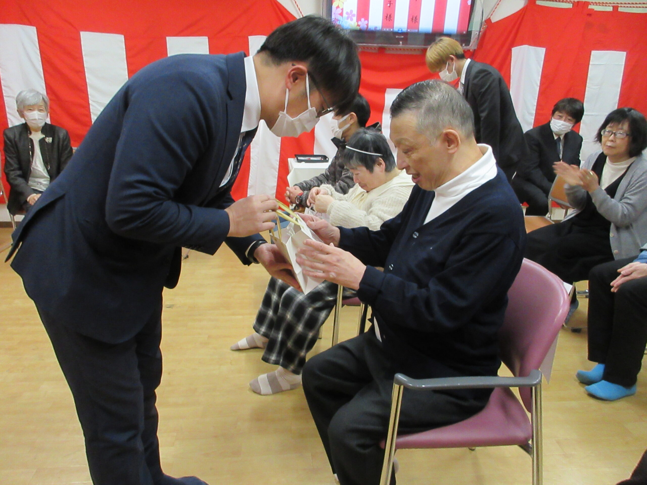 令和7年1月23日(木)長寿を祝う会を執り行いました。傘寿、還暦のご利用者様がそれぞれ1名づつおられ、ひまわり館にてお祝いをさせて頂きました。他のご利用者様も多数参加され素敵な式典となりました。皆様の幸せとご健康を心よりお祈り申し上げます。