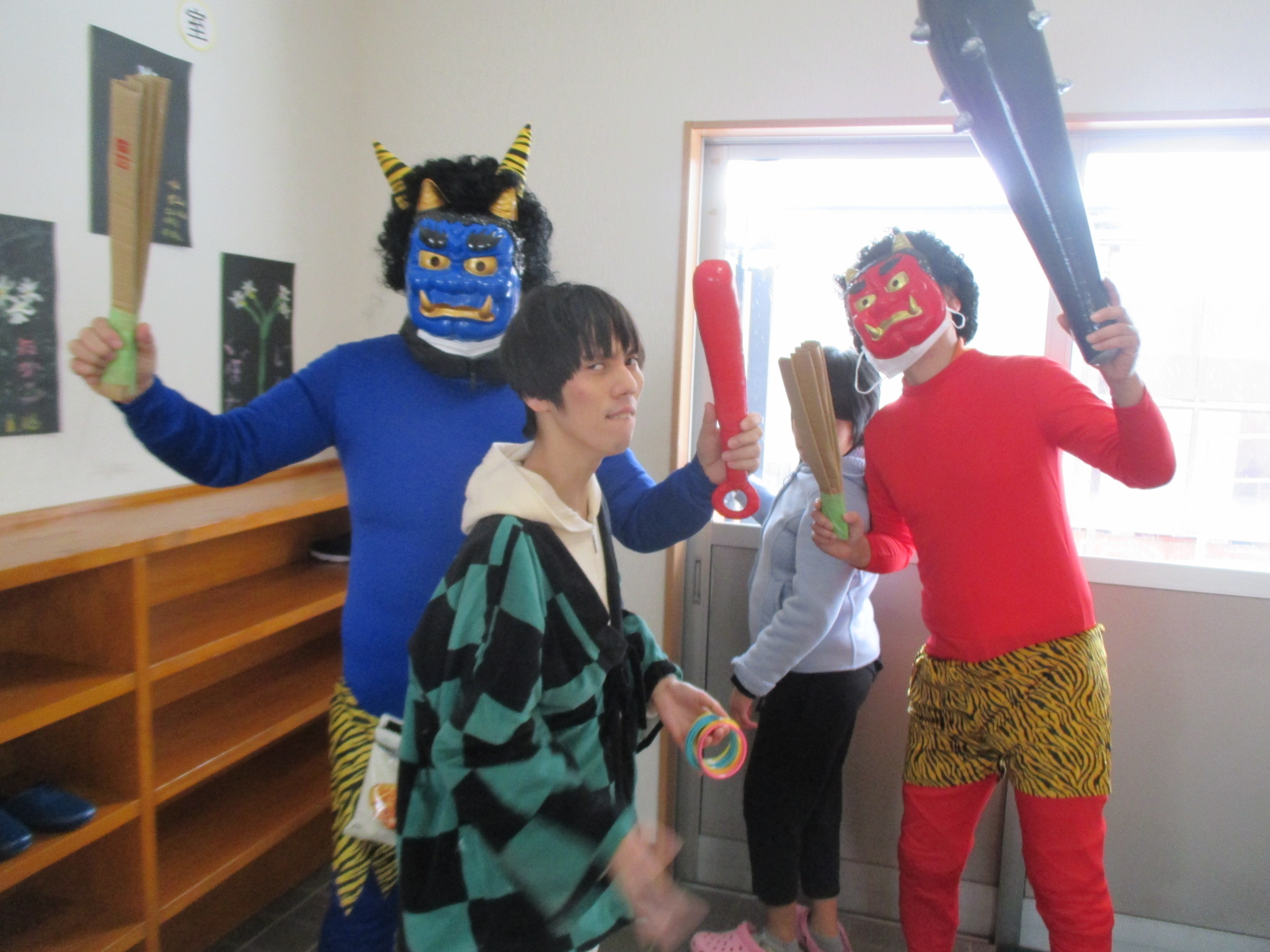 2月4日(火曜日) 節分の豆まきを行いました。鬼は~外~🎵 福は~内~🎵