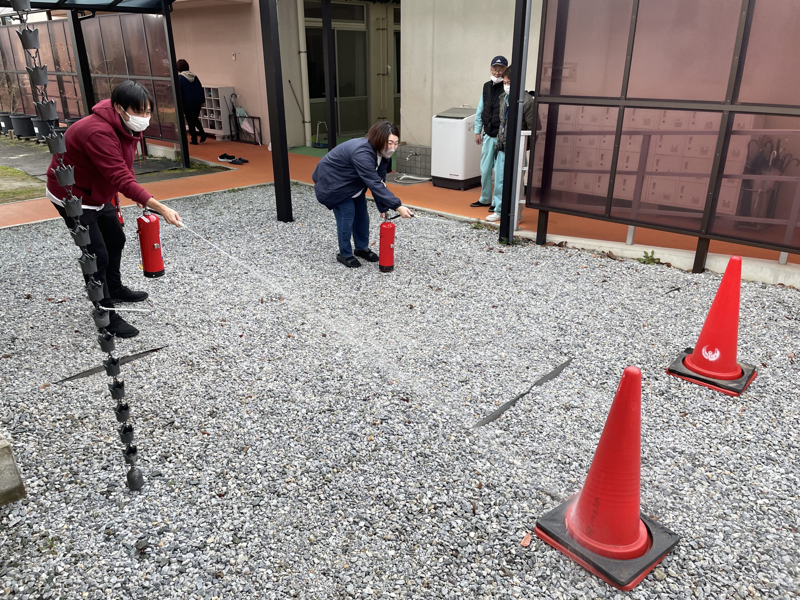 3月5日(水)防災訓練が行われました。地震発生から火災発生を想定して訓練を行い、利用者様はひまわり館に避難して、職員は消火訓練を行いました。