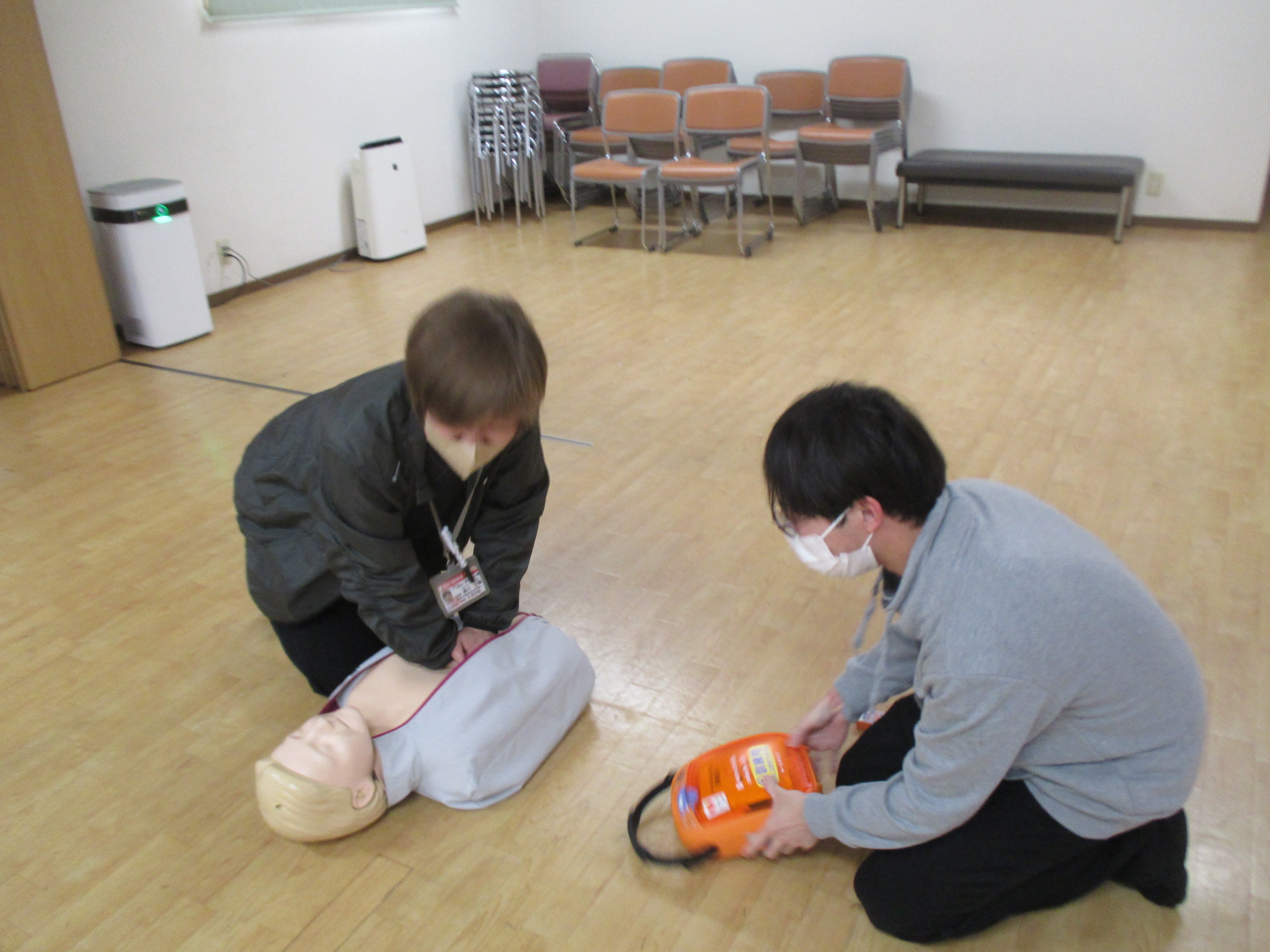 3月13日(木)職員のAED研修が行われました。利用者様の命を守る大切な研修です!